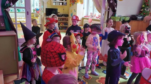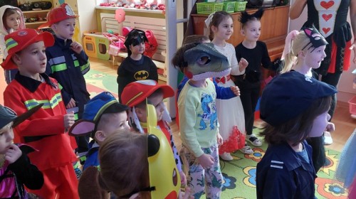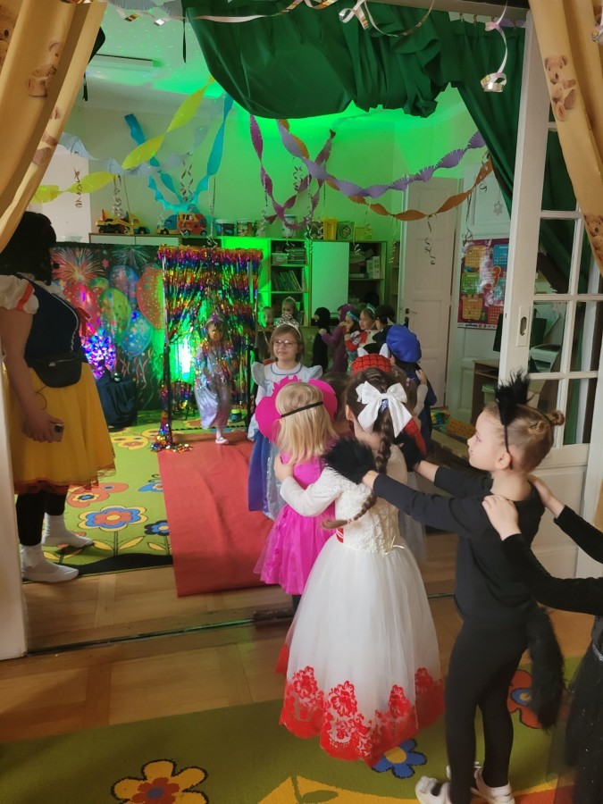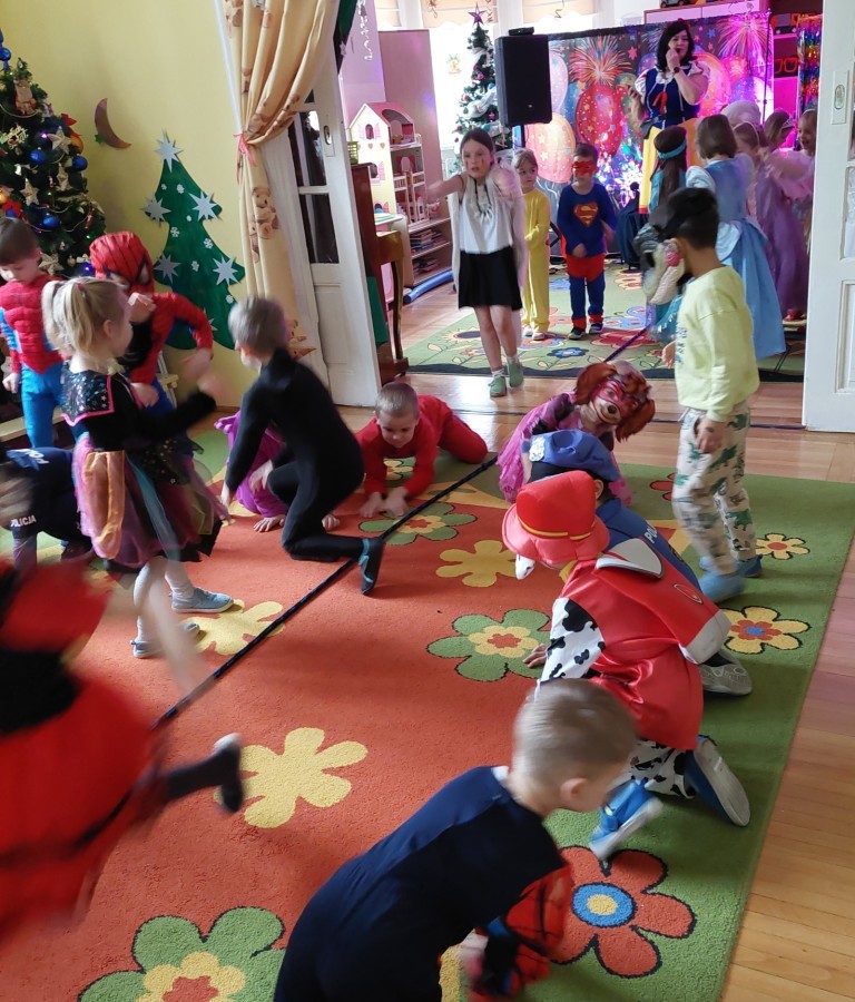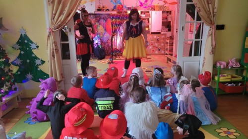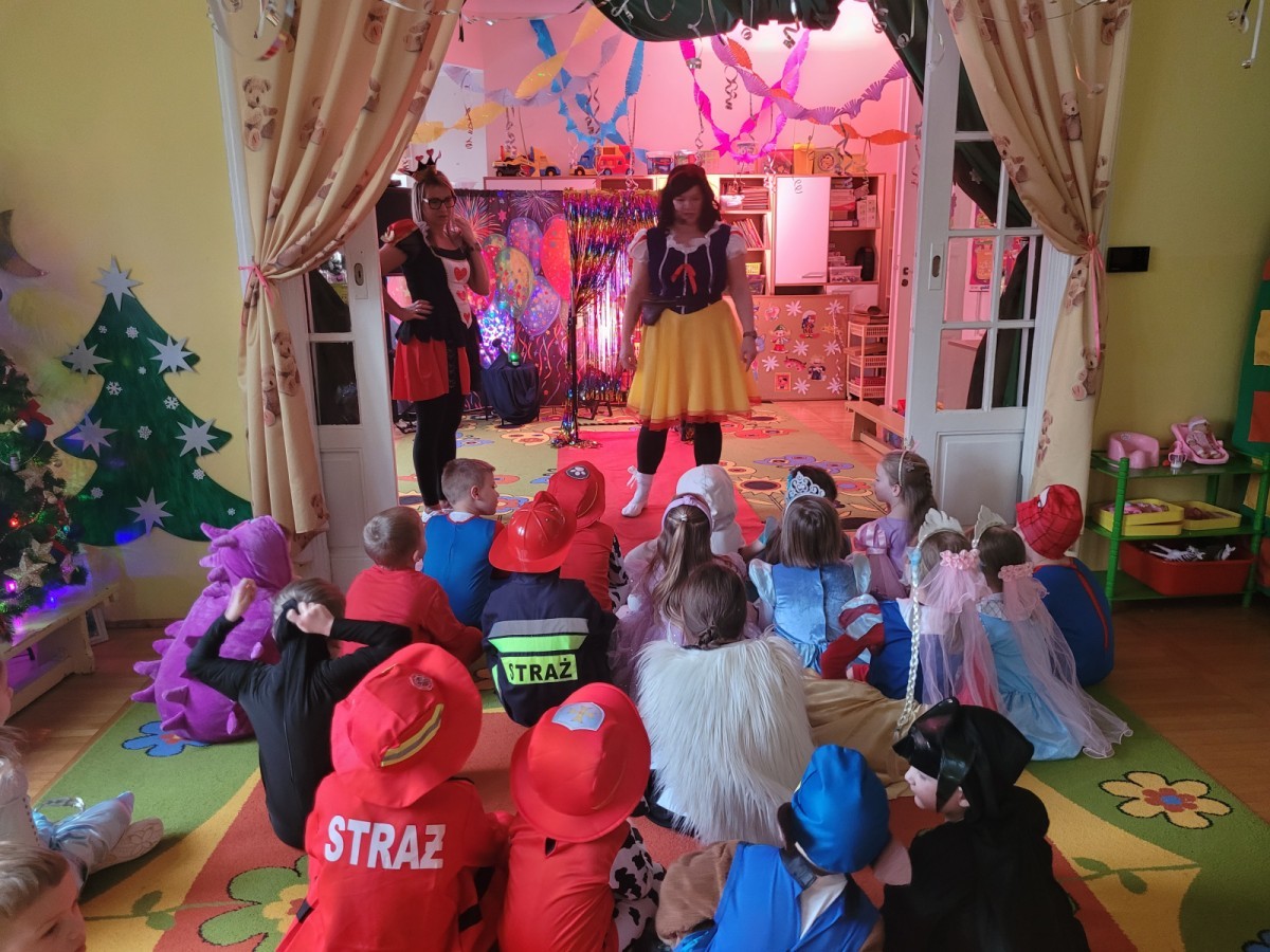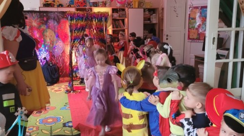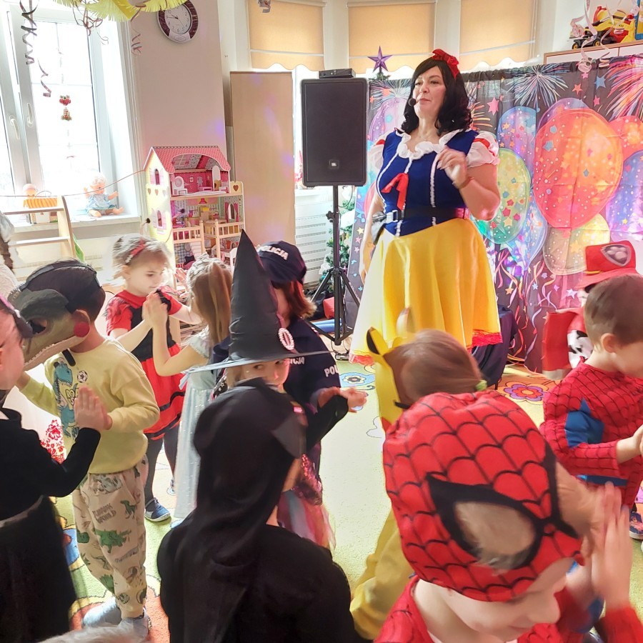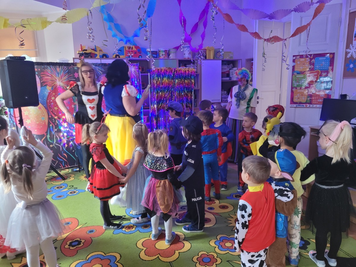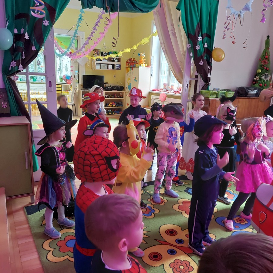 Dnia 16.01.2026 r. w naszym przedszkolu odbył się Bal Karnawałowy. Dzieci uczestniczyły w zabawie w barwnych i pomysłowych strojach karnawałowych, tworząc radosną i wyjątkową atmosferę. Zabawę prowadziły profesjonalne animatorki, których udział został sfinansowany ze środków Rady Rodziców. Przygotowany program obejmował tańce, zabawy ruchowe oraz konkursy dostosowane do wieku dzieci. Bal Karnawałowy sprawił przedszkolakom wiele radości, a uśmiech i entuzjazm towarzyszyły im przez cały czas trwania wydarzenia.