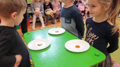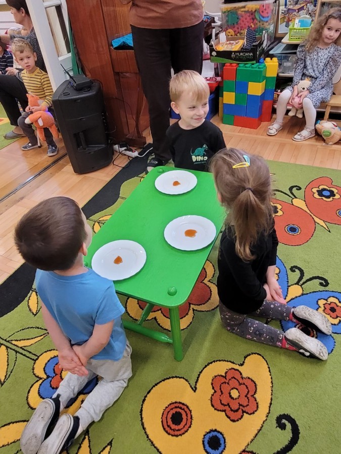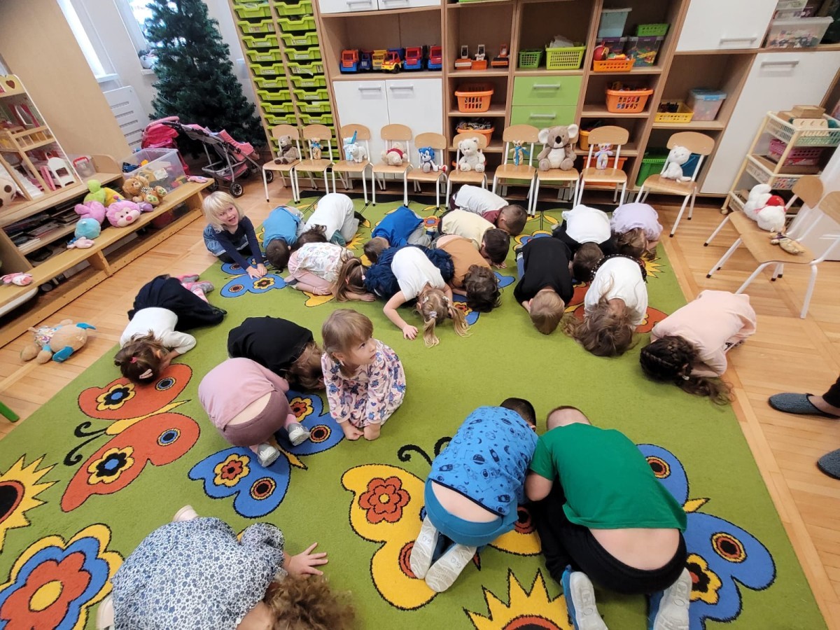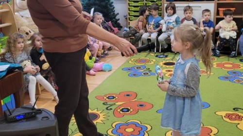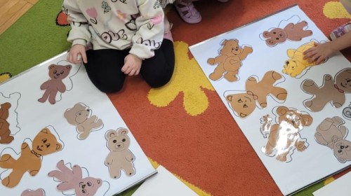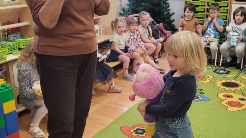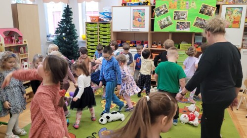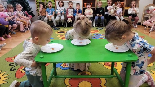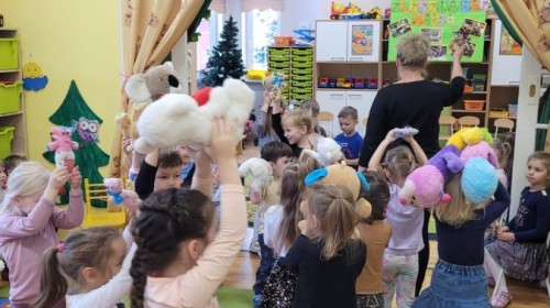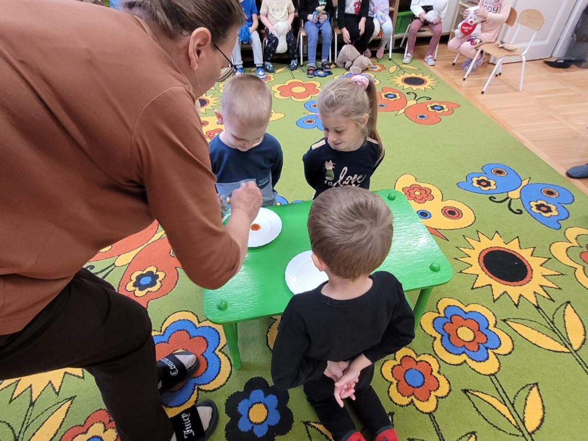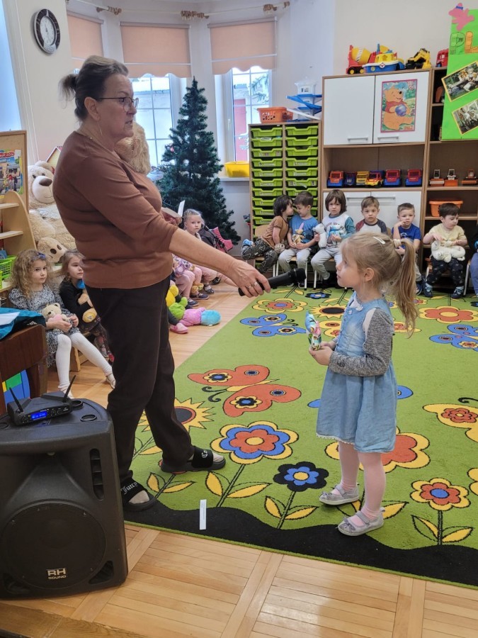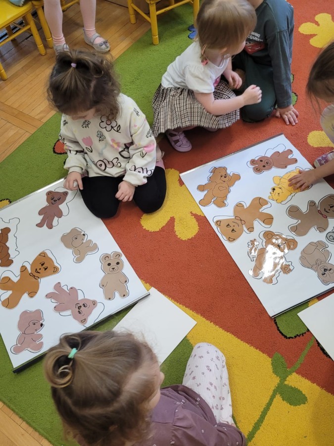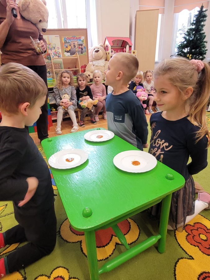 W czwartkowy poranek zgromadziły się dzieci z całego przedszkola wraz ze swoimi ulubionymi pluszowymi misiami z okazji ich święta. Po wstępnej prezentacji przy muzyce prowadząca imprezę Pani Ela zaprosiła przedszkolaki do fantastycznych konkursów. Były wśród nich: składanie obrazków pociętych na części, zjadanie palucha kukurydzianego, zlizywanie miodku z talerzyka, rozwiązywanie zagadek związanych z misiami. Wszystko było przeplatane tańcami z misiem albo dla misia oraz piosenkami tj. „Pluszowy miś”, „Jadą, jadą misie”. Na koniec dzieci złożyły życzenia misiom i odśpiewały tradycyjne „Sto lat”.