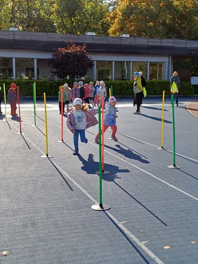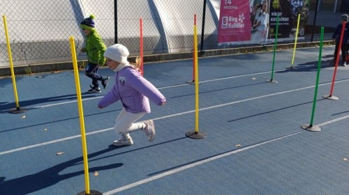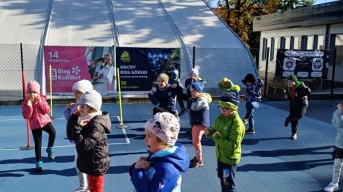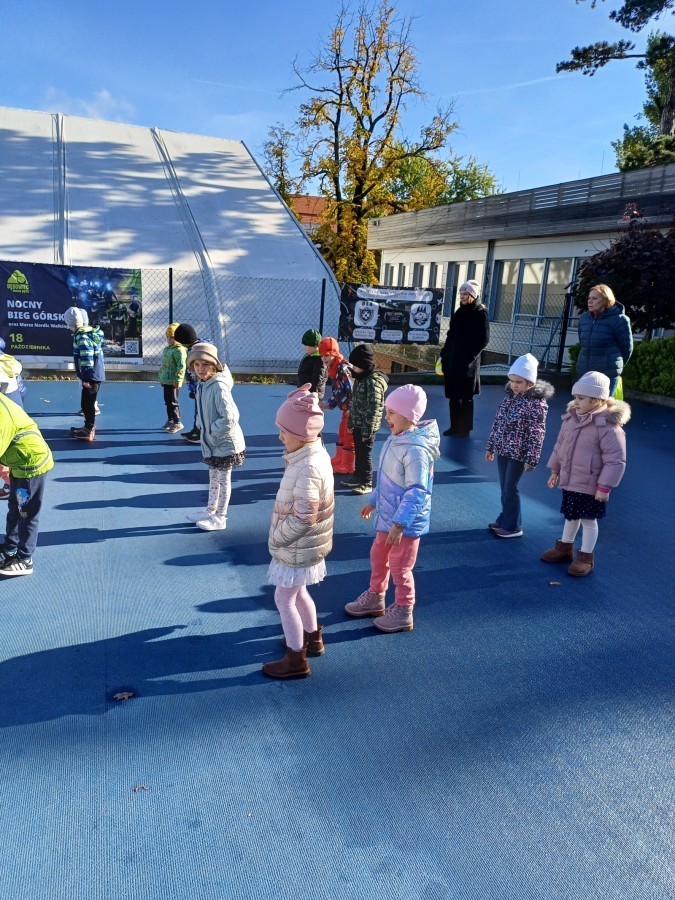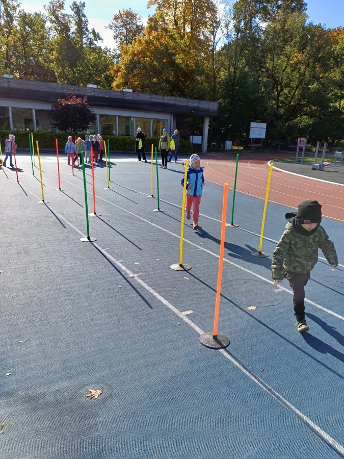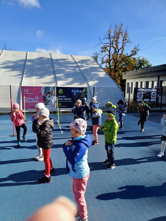 W poniedziałek 13.10.2025r. rozpoczęliśmy pierwszy w tym roku trening na obiekcie sportowym "Orlik" w Parku Słowackiego pod okiem profesjonalnej instruktorki BBOSiR-u. Regularna aktywność dzieci wpływa na kształtowanie sprawności motorycznej, koordynacji ruchowej oraz ogólnej kondycji organizmu, co stanowi solidna bazę dla późniejszych wyzwań edukacyjnych i społecznych. Podczas wesołych zabaw i zawodów dzieci rozwijały ogólną sprawność ruchową oraz nabywały odporność emocjonalną.