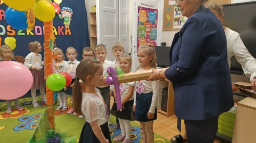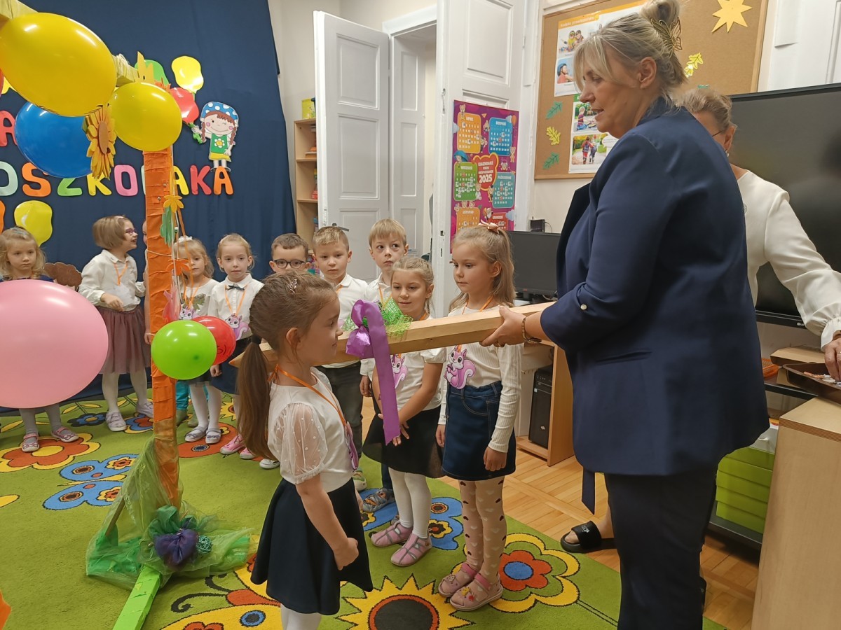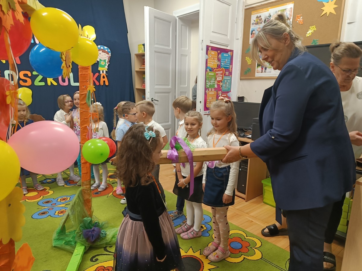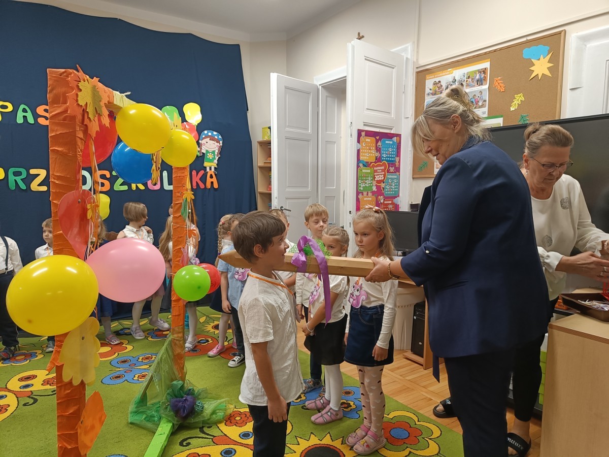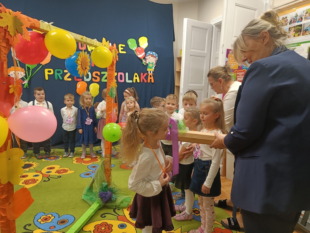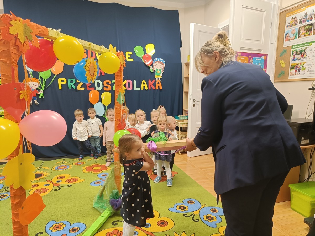 W naszym przedszkolu odbyła się jedna z najpiękniejszych uroczystości w roku – Pasowanie na Przedszkolaka. To był niezwykle ważny i wzruszający moment, zwłaszcza dla naszych najmłodszych, którzy po raz pierwszy wystąpili przed publicznością i zostali oficjalnie przyjęci do grona przedszkolaków. Maluszki zaprezentowały swoje umiejętności – recytowały wierszyki, śpiewały piosenki i tańczyły z ogromnym zaangażowaniem i radością. Po części artystycznej dzieci złożyły uroczyste przyrzeczenie, a następnie każdego z nich Pani Dyrektor symbolicznie „pasowała” na przedszkolaka.