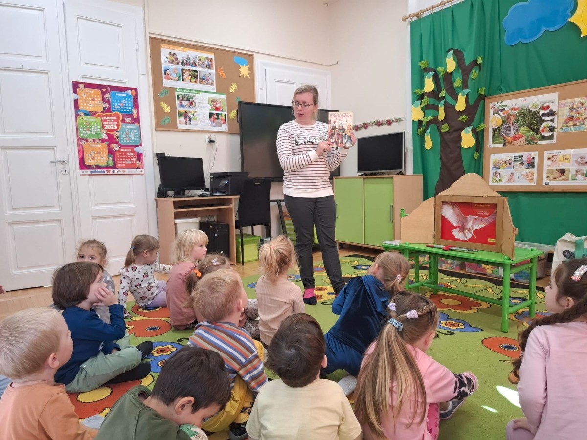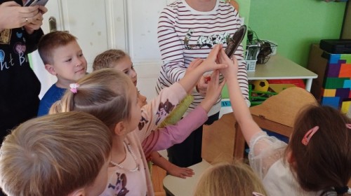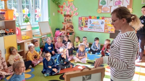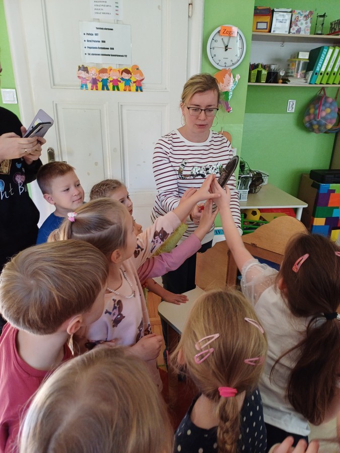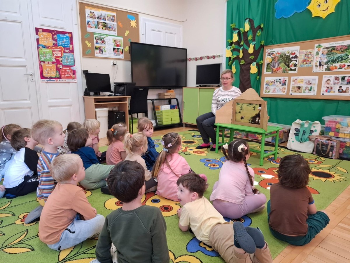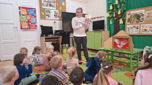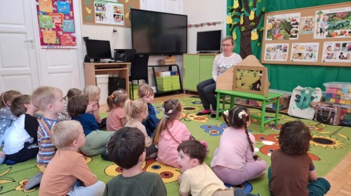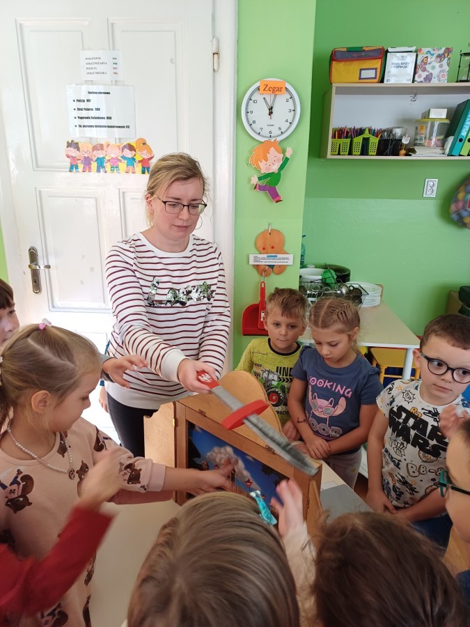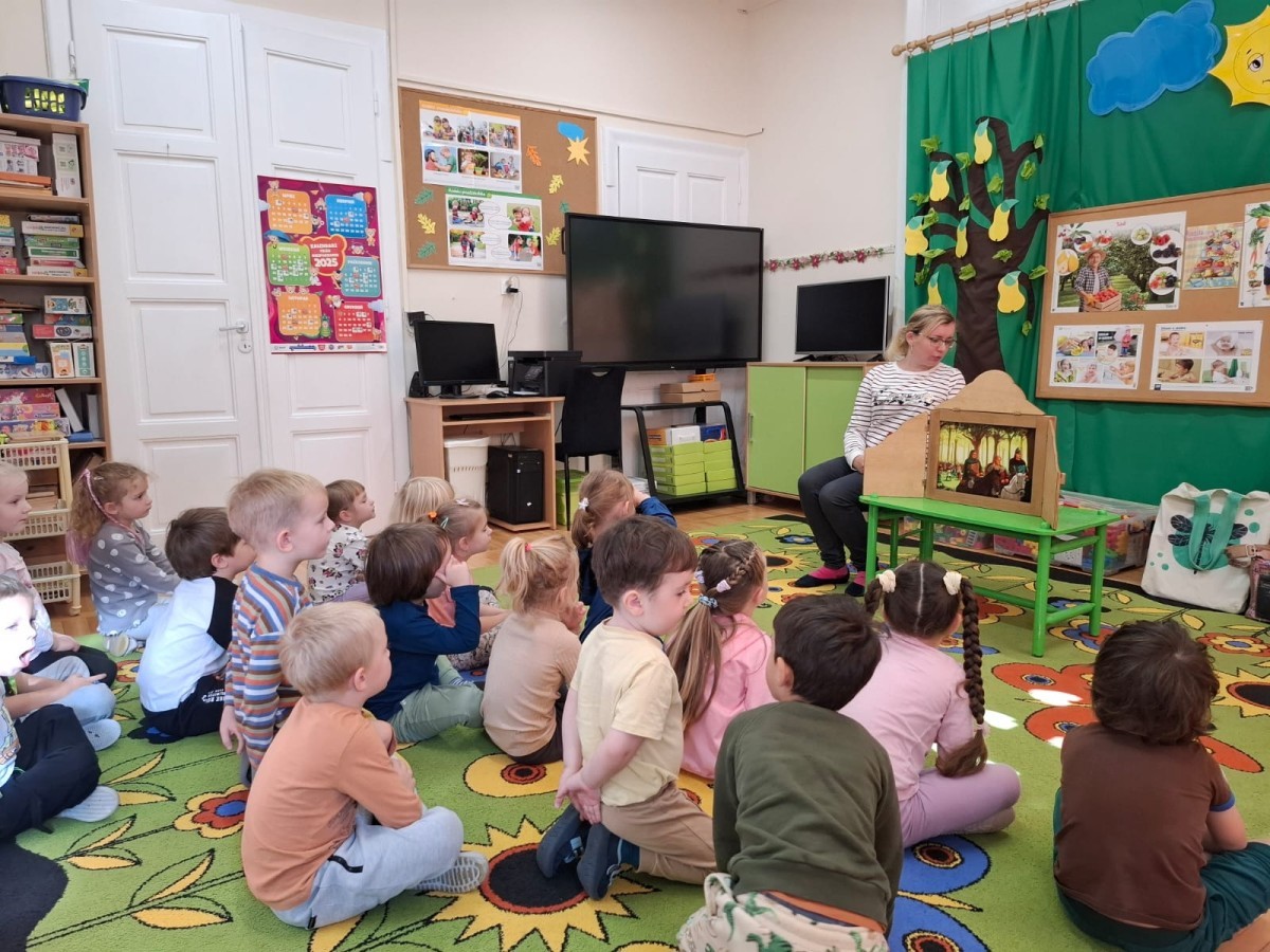KAMISHIBAI (Papierowy Teatr) – zapoznanie z magicznym drewnianym teatrzykiem i techniką opowiadania, wywodzącą się z Japonii, wykorzystującą plansze z obrazkami i tekstem. Goszcząca w naszym Przedszkolu przedstawicielka Biblioteki Pedagogicznej Wojewódzkiej w Bielsku – Białej zaprezentowała dzieciom tą techniką przedstawiając Legendę o Lechu, Czechu i Rusie oraz przypominając i utrwalając symbole narodowe oraz ich kolory. Ilustracje towarzyszące opowieści wzbogaciły i rozwinęły wyobraźnię dzieci oraz wprowadziły do świata fantazji.