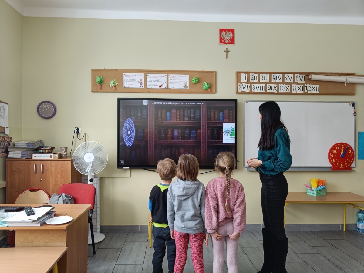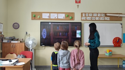 Wizyta dzieci z grupy "Wiewiórki" na warsztatach w ramach dni otwartych w Szkole Podstawowej nr 4 w Bielsku-Białej